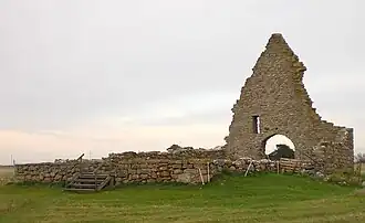 The church (not a parish church[2]) was built in the first part of the 13th century under the auspices of the bishop of the Diocese of Linköping, which included the islands of Gotland and Öland. The chapel belonged to one of the largest churches of its time on the island. It had a large nave (only the churches at Köpingsvik and Hulterstad had larger naves[2]) and a slightly smaller choir, and a small vestry on the north end. The high roof probably created space for lodging pilgrims (that this was a pilgrimage church is suggested also by the dimensions of the nave[3]), and the church was surrounded by a wall, enclosing an area of 67 × 55 meters, including a cemetery. In the southeast corner is a spring, which was probably used already in prehistoric times.[1]
