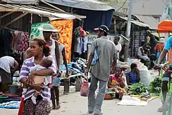 Sakalavas are considered to be a mix of Austronesian and Bantu peoples.[7] Austronesian peoples from various southeast Asian and Oceanian groups started sailing to and settling in Madagascar between 400 and 900 CE. The earliest confirmed settlements, on Nosy Mangabe and in the Mananara Valley, date to the eighth century. Bantu-speaking farmers, moving from Central and East Africa, arrived in Madagascar in the ninth century. According to Gwyn Campbell, "the most accurate genetic data to date indicates that the founding settlement, on the northwest coast, comprised a maximum of 20 households, totalling [sic] around 500 people, either genetically mixed, or half Austronesian and half African."[8] Later, Swahilis, Arabs, and Indian and Tamil traders came to the island's northern regions.[9] Enslaved people from mainland Africa were brought to the island in increasing numbers between the 15th and the 18th centuries, particularly to the region where Sakalava people now live. This influx of diverse peoples led to the formation of various Malagasy sub-ethnicities in the mid-2nd millennium. Portuguese traders were the first Europeans to arrive in the 15th century, followed by other European powers.[10]
