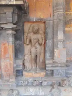 Thiruppurambiyam was the fierce battlefield in the 9th century deciding the bright future of Cholas. Chola king Aditya I built a temple in sweet remembrance of the turn of tide in his favour and named it Aditeshwaram. The present name of the presiding deity is Sakshinathar, and the consort's name is Kuraivilla Azhagi (Goddess with unsurpassed beauty). The sanctum of the consort was built by the Chola King Rajaraja Chola I. The sanctum wall contains beautiful sculptures of Parivara devatas(other deities of Siva temple). Lord Ganesa, the elephant god is performed honey showering on the day of Vinayagar Chaturthi and all the honey showered down on Him is absorbed.[4] The temple is counted as one of the temples built on the northern banks of River Kaveri.[5] An inscription on the west wall of the central shrine belonging to the period of Gandaraditya Chola indicates that a gift of 2 ma of land was given to the temple by Savandi Kumaran, Madevan of Idayarkudi, a local chieftian of Innambarnadu.[6]