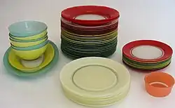 Duralex colored glass plates and bowls, around 1958