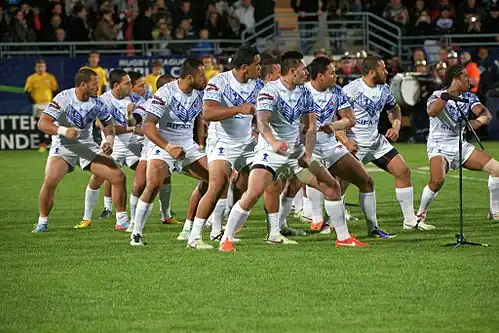 The Samoa national rugby league team represents Samoa in rugby league football and has participated in international competition since 1986. Known as Western Samoa before 1997, the team is administered by Rugby League Samoa and are nicknamed Toa Samoa (English: Samoan Warriors).