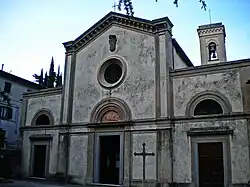 San Lorenzo in Usella is a Roman Catholic church located in Usella, Cantagallo, in Tuscany, Italy. This country church goes back to at least the year 997 and the village of Usella grew around it. There is a church, its bell tower and rectory. It was restored in the early 1900s. It is home to a 17th-century painting, the Virgin and Child with Saints Lorenzo and Barnaba, attributed to Jacopo Chimenti known as l'Empoli. Near the entrance is a baptismal font carved in the late-Mannerist style from 16th century marble.[1]
