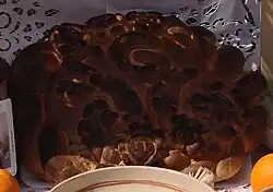 On the morning of the second day, before the patronal procession, mattre (tables for the poor) are prepared and blessed by the parish priest. The mattre were originally offered to the poorer communities of the town but today it is generally offered to everyone including tourists. The Tables of Saint Joseph, which reference the Last Supper, are also prepared. Thirteen loaves of bread are prepared and set out on tables.[28]