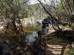 San Mateo Creek is a stream in Southern California in the United States, whose watershed mostly straddles the border of Orange and San Diego Counties.[1] It is about 22 miles (35 km) long, flowing in a generally southwesterly direction. Draining a broad valley bounded by the Santa Ana Mountains and Santa Margarita Mountains, San Mateo Creek is notable for being one of the last unchannelized streams in Southern California.[4]