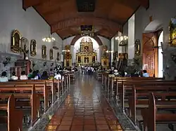 In this church, the first tabernacle outside Manila was built including the first Eucharistic Procession outside of Manila on October 9, 1600.[2][5] On October 8, prior to the eucharistic procession, choirs from Santa Ana de Sapa, Pangil, Nagcarlan, Pila and Lumban sang in a mass officiated by Father Juan Montes de Oca, provincial of the Augustinians.[5] Based on the records of Felix Huerta, the parish has two chapels dedicated to Saint Sebastian and the Holy Cross.[6] Adjacent to the church is the church convent (convento) built under the term of Father Francisco de Cañaveras.[6]