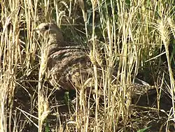 Sandgrouse have little interaction with people, primarily because most species live in arid unpopulated areas and at low densities. They are not generally sought after as game birds as they are not especially palatable, although they have on occasion been taken in great numbers at water holes. An attempt to introduce them into Nevada failed but they have been introduced to Hawaii.[34] No species is considered to be threatened although there have been some localised range contractions, particularly in Europe.[35] A subspecies of the chestnut-bellied sandgrouse, P. e. floweri, was last seen in the Nile Valley of Egypt in 1979. It is thought to be extinct, but the reasons for this are unknown.[36]