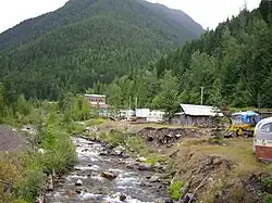 Following the 1891 discovery of silver by Eli Carpenter and Jack Seaton, thousands of prospectors sought the rich deposits of silver-lead ore.[6] Sandon silver mines were collectively the richest in the province during 1892–1900. After an ebb, World War I was the most productive mining period. The early 1950s, during the Korean War, brought a temporary peak in silver prices, and a rejuvenation of mining, before ending in 1953.[8] The Silvana Mine later operated, but became dormant in 1993. Klondike Silver Corp. have acquired the undersurface mine, but it is unclear whether any genuine exploration is being conducted.[11]