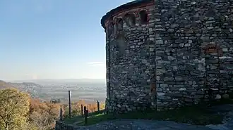 The church Santo Stefano di Sessano is all that remains of the village of Sessano, located on the rocky foreland to the east of the village of Chiaverano, which may have been abandoned after a landslide.