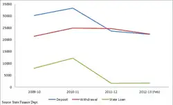 Companies illegally moving deposits diverted an estimated sum of 240 billion (US$2.8 billion) from small savings funds promoted by state government since 2010. Official data show a steady decline in small-savings deposits and a rise in withdrawals, which left a reduced amount from which the state government could borrow. This affected the overall macroeconomic situation of the state; instead of being used by government for public funding, the money went into Ponzi schemes that were either diverted to foreign locations or were put to use for private gains.[173]