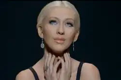 A music video, directed by Christopher Sims, was already shot on November 8, 2013, with Aguilera posting a picture of her standing next to a piano, where the duo is playing the track, to her Twitter, Facebook and Instagram page.[40][41][42] The music video, which was shot in Los Angeles, was released on November 19, 2013, exclusively on Entertainment Tonight, while VEVO premiered the video on November 20, 2013.[43] The video features Aguilera in a simple black dress and natural make-up, reminiscent of her "Beautiful" days, according to MTV's Natasha Chandel.[44] In the video, the trio perform the ballad as people — a child whose parents won't stop fighting, a young couple lying coldly side by side, an older man bidding his dying wife goodbye — act out the heartbreaking lyrics.[45]