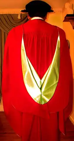 Scarlet is the color worn in traditional academic dress in the United Kingdom for those awarded doctorates. It is also the color of many of the undergraduate gowns worn by students of the ancient universities of Scotland.