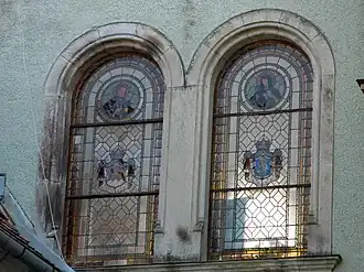 Stained glass reflecting Schönborn heraldry