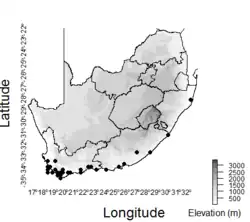 | Documented collection localities in South Africa | |
