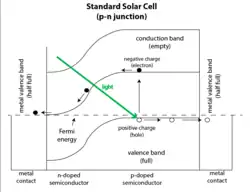The Schottky-junction is an attempt to increase the efficiency of solar cells by introducing an impurity energy level in the band gap. This impurity can absorb more lower energy photons, which improves the power conversion efficiency of the cell.[6] This type of solar cell allows enhanced light trapping and faster carrier transport compared to more conventional photovoltaic cells.[7]