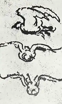 He studied the topographical anatomy of a bear in detail, making many drawings of its paws. There is also a drawing of the muscles and tendons of the bear's hind feet. Other drawings of particular interest include the uterus of a pregnant cow, the hindquarters of a decrepit mule and studies of the musculature of a little dog.