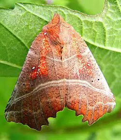 The Scoliopteryginae are a subfamily of moths in the family Erebidae. Larvae have distinctive, extra setae on the first through seventh abdominal segments. Many adult moths in the subfamily have a proboscis adapted to pierce fruit skin, allowing consumption of the juice in the fruit.[1]