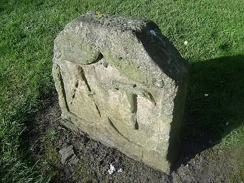 Since 1457, it had been the habit to organise the local Wappenshaw (presenting weaponry for inspection) in the local graveyards. The resulting wounds on the fine sandstone of many rare stones has left them defaced by the continuous bombardment of missiles.