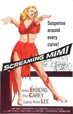 Screaming Mimi is a 1958 American film noir directed by Gerd Oswald and starring Anita Ekberg, Philip Carey and Gypsy Rose Lee.[1] The story originated as a 1949 novel of the same name by Fredric Brown.
