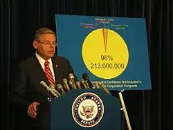 Senator Bob Menendez press conference, with the alternate seal on the podium