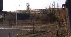 Ukrainian and separatist forces continued to exchange artillery fire. Amidst the continuing fire, a school and bus stop in the Kyivskiy district of Donetsk city, which neighbours the airport, were struck by shells on 1 October.[32][33] Ten civilians were killed, though no schoolchildren were harmed. According to Joanne Mariner of Amnesty International, it was "impossible to tell" who was responsible for the incident. She also said, however, that "residential areas have been hit by Ukrainian forces firing from the airport", and that DPR forces "also bear responsibility as they have been stationing artillery in residential areas and firing from there, in clear contradiction of the laws of war".[32] Concurrently, DPR forces supported by tanks began to advance into the airport, and seized several hangars, a fuel storage area, and outbuildings. They used these buildings as artillery emplacements, and began to bombard Ukrainian positions from them. DPR forces continued to move forward, and captured the control centre, police station, and hotel, but could not advance further.[29] Mutual shelling continued on 2 October.[34][35] The situation, according to the Ukrainian government, was "difficult".[36]