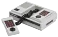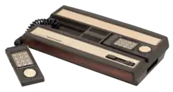 In 1978, Magnavox released its microprocessor-based console, the Odyssey 2, in the United States and Canada.[42] It was distributed by Philips Electronics in the European market and was released as the Philips G7000.[43] A defining feature of the system was the speech synthesis unit add-on which enhanced music, sound effects and speech capabilities.[44] The Odyssey² was also known for its fusion of board and video games. Some titles came with a game board and pieces which players had to use in conjunction to play the game. Although the Odyssey² never became as popular as the Atari consoles, it sold 2 million units throughout its lifetime. This made it the third best selling console of the generation.[45] It was discontinued in 1984.[46]