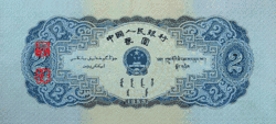 The second series of Renminbi banknotes was introduced on March 1, 1955 (but dated 1953). Together with the introduction of the second series, the decimal point was moved 4 places to the left. As a result, one first series ¥10,000 note is equivalent to one second series ¥1 note.