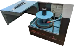 The Seeburg 1000 phonograph was introduced in 1959 as model BMS1.[1] The system replaced the Seeburg Library Unit, which served the same purpose but played standard 45 rpm records. The Seeburg 1000 is enclosed in a metal cabinet 22 inches (55 cm) wide by 14 inches (35 cm) tall by 12 inches (30 cm) deep.[2] A later version (the Seeburg Background Music Compact, model BMC1) is housed in a windowless, blue and grey painted metal box. This version contains only the record-playing mechanism, without any amplifier or timer built in.[3]