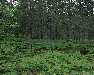 ![]() Pinus resinosa forest, with Pteridium aquilinum understorey. Seney National Wildlife Refuge | |