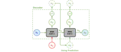 During prediction time, the "teacher" would be unavailable. Therefore, the input to the decoder must be , then , and so on.