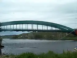 The East River Bridge was built across the Northeast Arm in 1957 to replace its predecessor. It was a 213 m (699 ft) long green arch bridge and its ribs were reinforced heavily in 1988. It was replaced by a 187 m (614 ft) long multi-span bridge of the same name which began construction in 2014 and opened fully on December 18, 2015.[9] Marine Drive Academy, the only school in the Sheet Harbour area, was opened in 2020. Sidewalks were laid through the main downtown area and moorings were installed in the harbour in 2010 and 2017 respectively. A deep-water dock and accompanying industrial park was built in the 1990s on the western shore of the harbour. It serviced the Sable Offshore Energy Project, due to it being the closest terminal to the project, and is in close proximity to major intercontinental shipping routes. An RCMP detachment and a branch of the Halifax Public Libraries are present within the community as well, along with the aforementioned hospital and high school.
