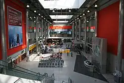 Expansion of Sheremetyevo continued into 2010.[17] Sheremetyevo-1 was renamed Terminal B on 28 March. Terminal E was opened on 30 April, connecting Terminal D and Terminal F and increasing the airport's capacity to 35 million passengers per year. In June, construction started for Terminal A, a private aviation terminal. In July, a walkway opened between Terminals D, E, F, and the Aeroexpress railway terminal on the public access side.[18] In November, a walkway opened between Terminals D, E, and F on the security side.[19] Both of have simplified transfer between transit flights. Ultimately, after the northern the recent construction work, the airport now has the capacity to receive more than 40 million passengers annually.[16]