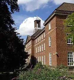 The Grade II listed main building, built in 1910, as viewed from Claremont Bank.