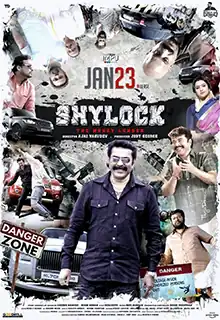Shylock is a 2020 Indian Malayalam-language masala film directed by Ajay Vasudev, written by Aneesh Hameed-Bibin Mohan and produced by Joby George under Goodwill Entertainments. The film stars Mammootty in titular role, alongside and Rajkiran (in his Malayalam debut), Meena, Siddique, Kalabhavan Shajon, Baiju Santhosh, Bibin George and Hareesh Kanaran in supporting roles. The film's title is a slang term for a loan shark.[2] The music was composed by Gopi Sundar, while cinematography and editing were handled by Renadive and Riyas K. Badhar.