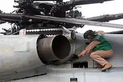 The MH-53E Sea Dragon is the U.S. Navy's helicopter with the highest accident rate, with 27 deaths from 1984 to 2008. During that time, its rate of class A mishaps, meaning serious damage or loss of life, was 5.96 per 100,000 flight hours, more than twice the Navy helicopter average of 2.26.[49] An independent investigation reported that between 1984 and 2019, 132 people died in accidents on the Navy and Marine versions of this helicopter.[50] A 2005 lawsuit alleged that since 1993, at least 16 in-flight fires or thermal incidents involved the number-two engine on Super Stallion helicopters. The suit claimed that proper changes were not made, nor were crews instructed on emergency techniques.[51][52]