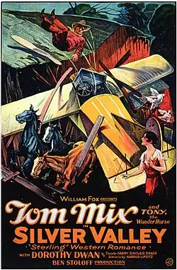 Silver Valley is a 1927 American silent Western film directed by Benjamin Stoloff and written by Harold B. Lipsitz and Malcolm Stuart Boylan. The film stars Tom Mix, Dorothy Dwan, Philo McCullough, Jocky Hoefli, Tom Kennedy, and Lon Poff. The film was released on October 2, 1927, by Fox Film Corporation.[1][2][3]