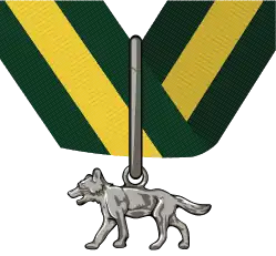The Silver Wolf is the highest award made by The Scout Association "for services of the most exceptional character." It is an unrestricted gift of the Chief Scout. The award consists of a Silver Wolf suspended from a dark green and yellow neck ribbon.