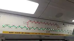 Prior to the 2020 circuit breaker measures during the early stages of the COVID-19 pandemic, the public transport operators and LTA were criticised by some commuters for its delayed actions of crowd control and the enforcement of social distancing on public transport.[90] In response, the LTA rolled out a series of precautionary measures, such as social distancing measures and making the wearing of masks in public transport mandatory.[91][92][93] Social distancing markers were progressively implemented in the MRT trains and stations which commuters must adhere to; enforced by auxiliary officers and transport ambassadors.[94] The significant reduction of commuters as remote work increased resulted in the transport operators reducing train frequencies and closing stations earlier from 17 April.[95][96][97] However, train frequencies were shortly reverted to normal upon review and feedback from the public.[98][99][100]