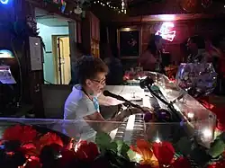 She celebrated 50 years of employment at the Sip 'n Dip in December 2013 and, at that time, the octogenarian was featured on CBS Sunday Morning.[5] She released two albums, only for sale at the Sip 'n Dip,[4][5] and though she took requests, she refused to play rock music.[5] In 2018, she was given a "Spirit of Montana" award by Montana's congressional delegation, with her name entered into the Congressional Record with the following tribute by Greg Gianforte: "Mr. Speaker, I rise today to honor a Montana musician known and loved by hundreds of thousands of fans in Montana and across the world.That's no exaggeration, because she has played in one iconic Montana establishment for 55 years."[12]