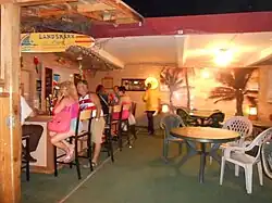 The establishment features a glass wall behind the bar looking into an indoor swimming pool where swimmers can be seen under water.[1] It is located inside the O'Haire Motor Inn, which was built in 1962. The concept of a swimming pool designed so that underwater swimmers can be viewed from inside the bar was original to the building, as the person who built the O'Haire had been inspired by a similar design he saw when visiting the Playboy Club in Chicago.[2] When built in the 1960s, the O'Haire Motor Inn was considered "swank" and modern,[3] and the tiki concept was popular, in part due to the then-recent admission of Hawaii to the United States as a state. The tropical theme was also viewed as a fun concept for Montana,[4] a landlocked state with long, cold winters.[5]