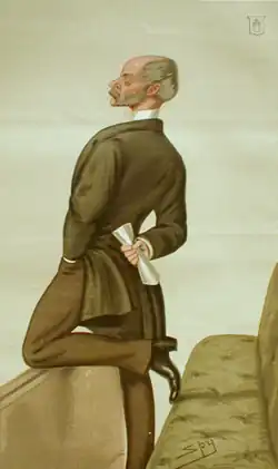 The soldier who couldn't draw his sword" – a caricature of Havelock-Allan in the House of Commons, Leslie Ward, 1879.