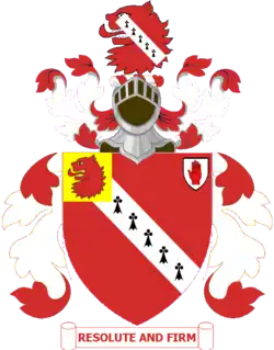 A lion's head erased Gules charged with a bend Ermine.