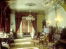 In 1862, Alfred, his wife Martha Harward (1836–1904), and their young daughter Eugenie (1860–1951) moved into their new home. The family furnished the home with expensive furniture from Portland's Walter Corey Company, choosing a Rococo Revival style (much of this furniture remains in the home today). Several of the rooms also feature marble fireplaces with encaustic tile and stylish curtains. At this time the home was most likely lit by gaslight. In 1864 Martha gave birth to a second daughter, Augusta Marie (1864–1902).[2]