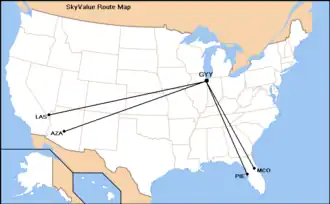 During the 2006–07 winter season, SkyValue flew to five destinations in the United States.[2]