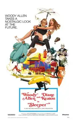 Sleeper is a 1973 American science fiction comedy film directed by and starring Woody Allen, who co-wrote it with Marshall Brickman. Parodying a dystopic future of the United States in 2173, the film involves the misadventures of the owner of a health food store who is cryogenically frozen in 1973 and defrosted 200 years later in an ineptly led police state. Contemporary politics and pop culture are satirized throughout the film,[2] which includes tributes to the classic comedy of Buster Keaton, Harold Lloyd, and Charlie Chaplin.[2] Many elements of notable works of science fiction are also paid tribute to, or parodied.