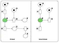 Petri net (PN) slicing is a syntactic technique used to reduce a PN model based on a given criterion.[1][2][3] Informally, a slicing criterion could be a property for which a PN model is analyzed or is a set of places, transitions, or both. A sliced part constitutes only that part of a PN model that may affect the criteria.