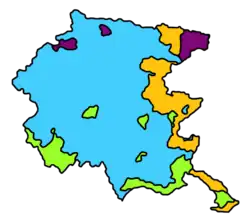 - a thin strip of territory along the border with Slovenia in the Province of Gorizia, including some neighborhoods of Gorizia;