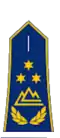 Insignias indicating the officer's rank are worn on the shoulder of a shirt or jacket. The insignias for regular officers are dark blue with one or more hexagram golden stars and a light-blue trim all-round. Higher-ranking officers have a golden all-round trim. Command staff insignias are embroidered with a golden Triglav-logo. The insignias of the deputy director general and the director general also have embroidered golden olive leaves.