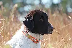 The Small Münsterländer (also SM or Kleiner Münsterländer) is a versatile hunting-pointing-retrieving dog breed that reached its current form in the area around Münster, Germany. The Large Münsterländer is from the same area, but was developed from different breeding stock and is not related as the names would suggest. Small Münsterländers bear a resemblance to both spaniels and setters but are more versatile while hunting on land and water. The Small Münsterländer is recognized by the Fédération Cynologique Internationale under Group 7, Section 1.2, Continental Pointing Dogs of Spaniel type, by the American Kennel Club as a Foundation Stock Service breed,[1] and by The Kennel Club and the United Kennel Club as a gun dog.[2] It is related to the Epagneul Français and the Drentsche Patrijshond.