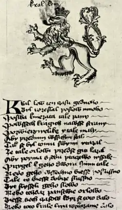 Smil Flaška spent his youth in the house of his uncle Arnošt of Pardubice.[1] Before 1367, he obtained a bachelor's degree at the University of Prague.[2] In the years 1384 and 1385 he was in a dispute with King Wenceslas IV, who declared his right to Pardubice as an escheat. The provincial court upheld Wenceslas's claim. Smil Flaška since developed an anti-royal attitude.[3]