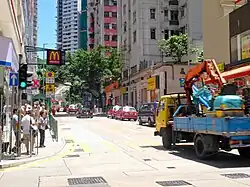 Smithfield is one of the few streets in Hong Kong without the use of words such as "Road", "Street", "Path", "Lane" etc.[29] Other notable examples are Queensway in Admiralty, Broadway (百老匯街) in Mei Foo and Glenealy in Mid-Levels.